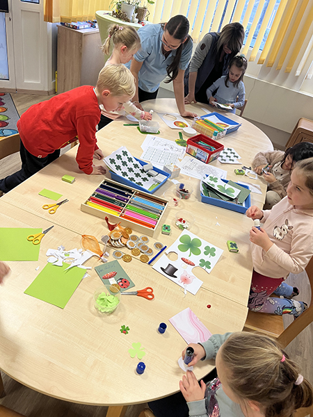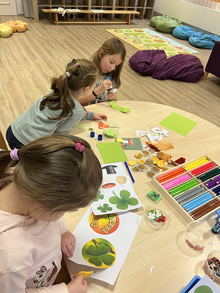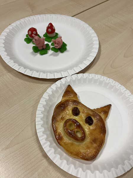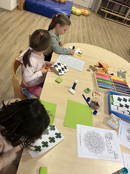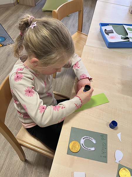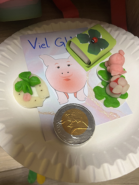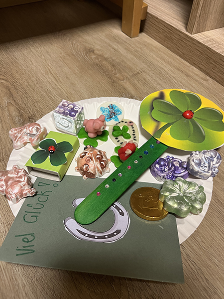 Der heutige Nachmittag stand ganz im Zeichen von Glücksbringern. Es wurde gebastelt, gebacken und gestaltet. Schweinchen, Fliegenpilze und Hufeisen aus Marzipan, gefüllte Germteig-Schweinchen und verschiedene Bastelarbeiten sorgten für Abwechslung und kreative Vielfalt. Der gemeinsame Nachmittag bot viel Raum für Fantasie und Entfaltung, der Freude machte und Glück zum Mitnehmen schenkte.