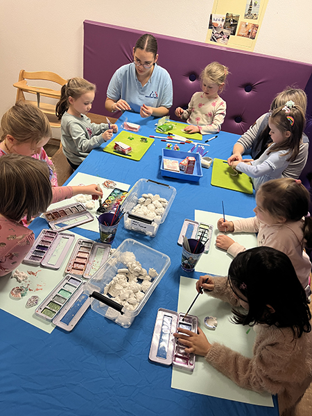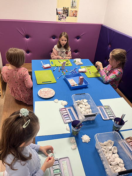 Der Klassiker unter den selbstgemachten Modelliermassen - der Salzteig - stand heute am Programm und das gleich in vielen verschiedenen Farben. Ausgerüstet mit der totalen kreativen Freiheit entstanden dabei wunderschöne Unikate.