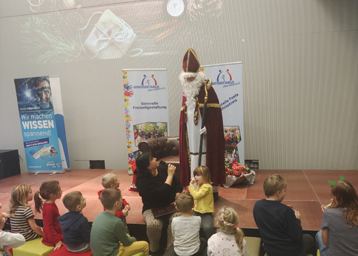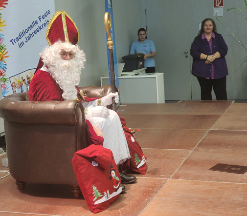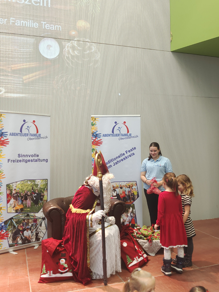 Ein ganz besonderer Höhepunkt war der Besuch des Nikolaus, der mit seiner warmherzigen Art und kleinen Aufmerksamkeiten die Kinder begeisterte. Begleitet wurde sein Auftritt von fröhlichem gemeinsamen Singen, das für eine besonders feierliche Atmosphäre sorgte. Kinderlachen und viele strahlende Gesichter machten diesen Vormittag zu etwas ganz Besonderem.