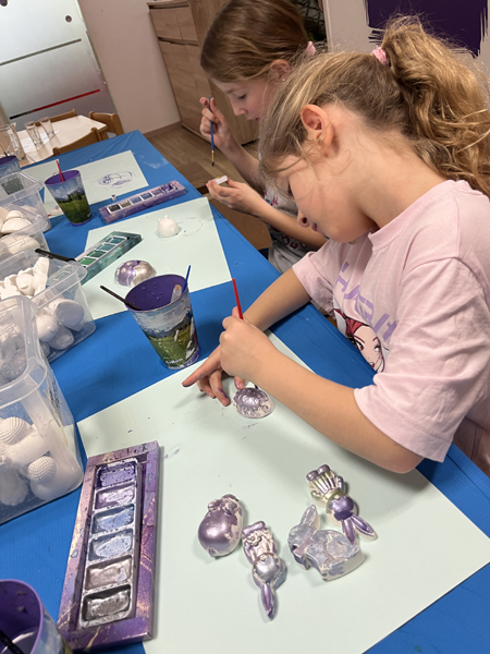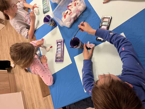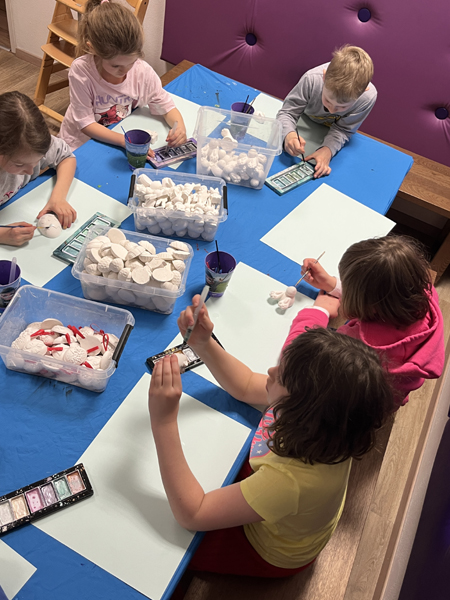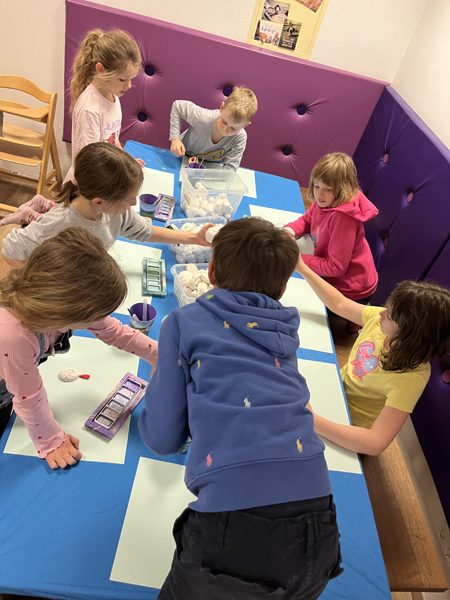 An einem gemütlichen Kreativnachmittag tauchten die Kinder in eine zauberhafte Winterwelt ein. Unter dem Titel „Winterwunder“ entstanden einzigartige Winterlandschaften auf Holzplatten, die mit viel Liebe zum Detail gestaltet wurden. Mit Füllwatte verwandelten sich die Platten in verschneite Landschaften, kleine Häuschen fanden ihren Platz, und LED-beleuchtete Tiere brachten die Werke zum Leuchten. Glitzerperlen, Farbe und zahlreiche kreative Elemente machten jede Winterwelt zu einem ganz persönlichen Kunstwerk.